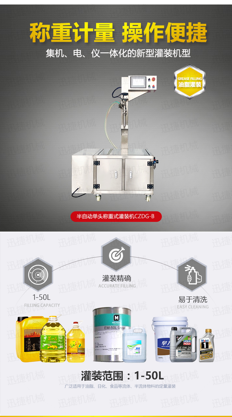 B、該灌裝機具有外形美觀、灌裝精度高、調(diào)節(jié)方便、易操作等特點