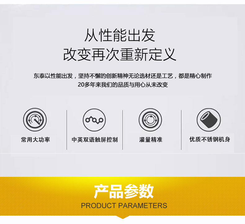 2.整體框架厚重結實,可以承受設備長年使用不變形,灌裝區為封閉式灌裝設計,外觀大氣整潔,具有防塵功能,更符合食品衛生規范。