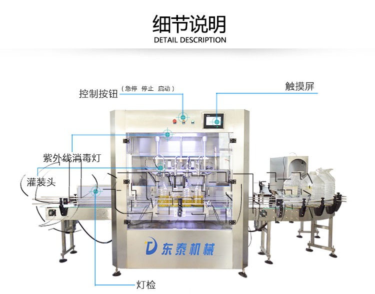 1.全自動食用油包裝生產線316L不銹鋼精制防滴漏灌裝頭,專為食用油灌裝設計,通過性好,內外精拋,真正的食品級。